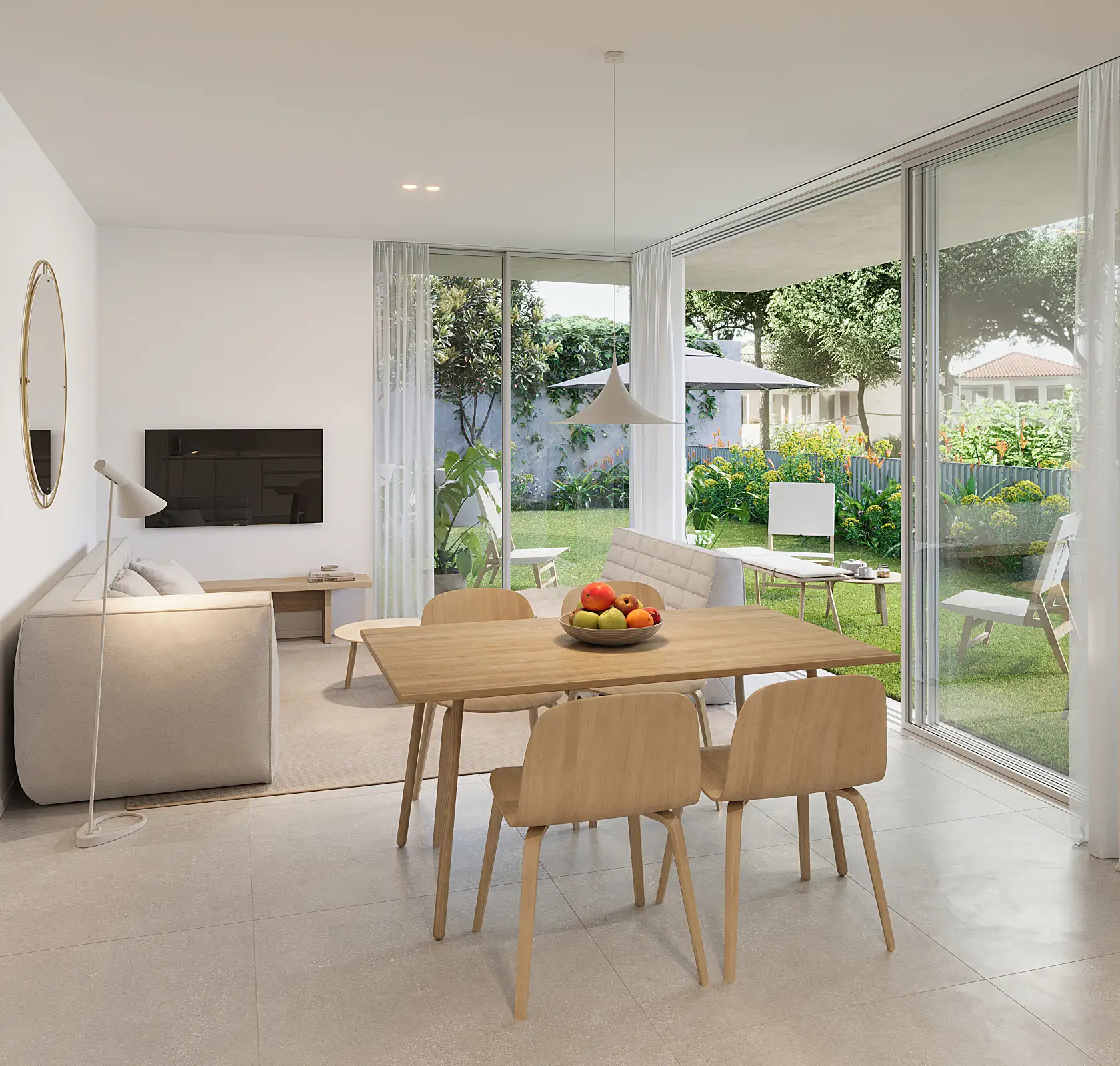 El jardí privat amplia la zona de convivència i permet viure l’exterior amb la mateixa comoditat que l’interior.