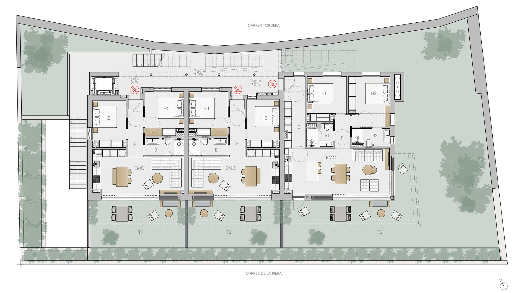 Tancaments: Alumini amb trencament de pont tèrmic, acabat lacat i vidre doble amb cambra d’aire i tractament baix emissiu.