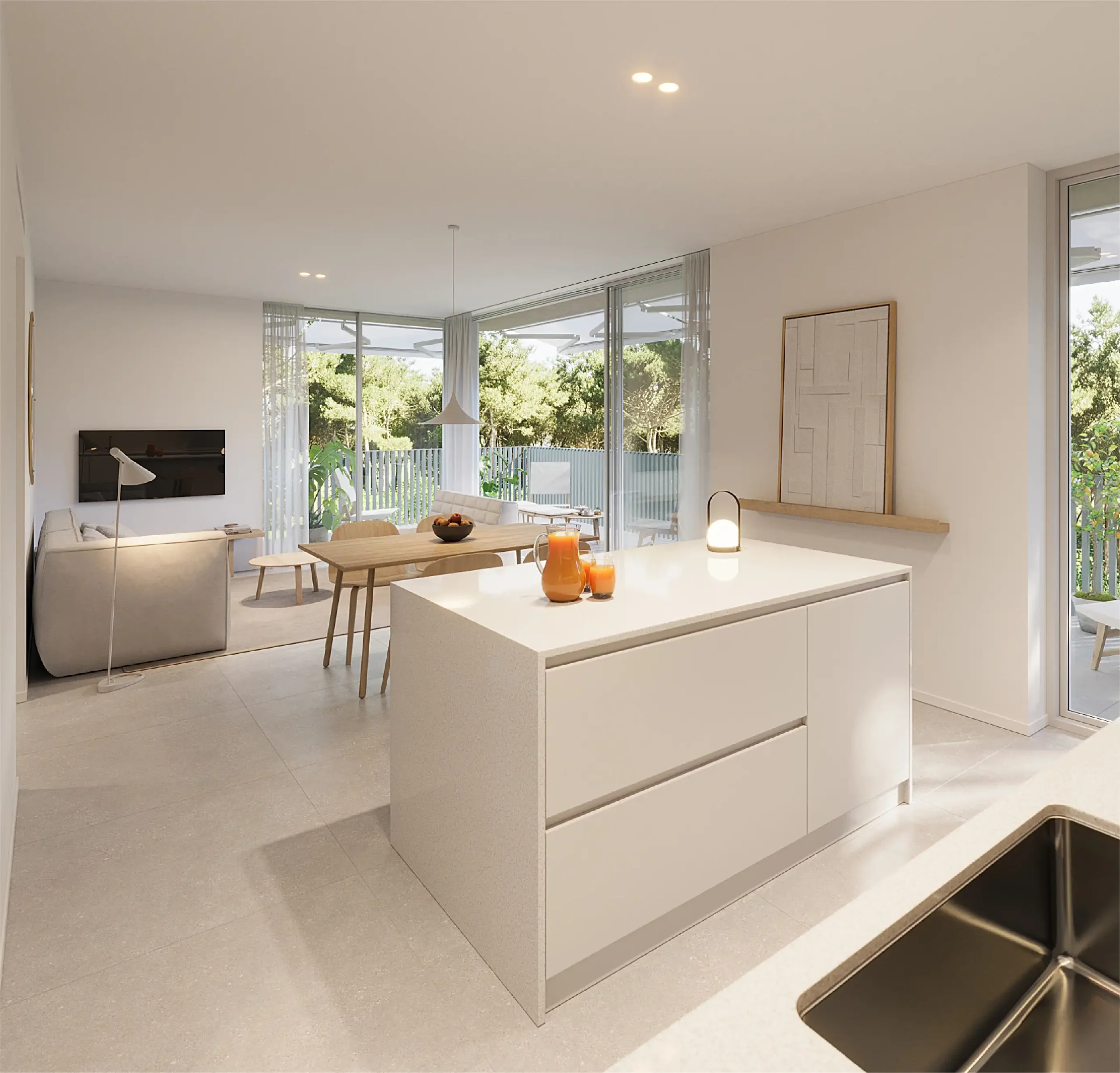 Cada apartament reflecteix un nivell d’acabat propi de l’excel·lència. Materials nobles, textures acollidores i solucions pràctiques s’integren per crear espais on el disseny i el confort conviuen en harmonia.